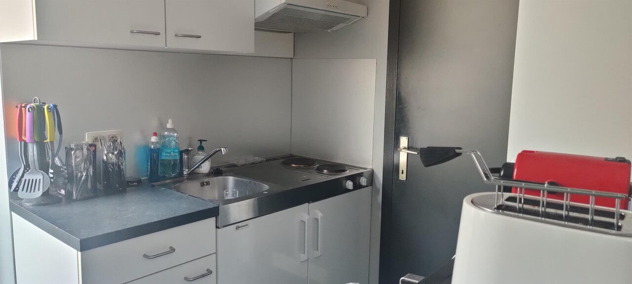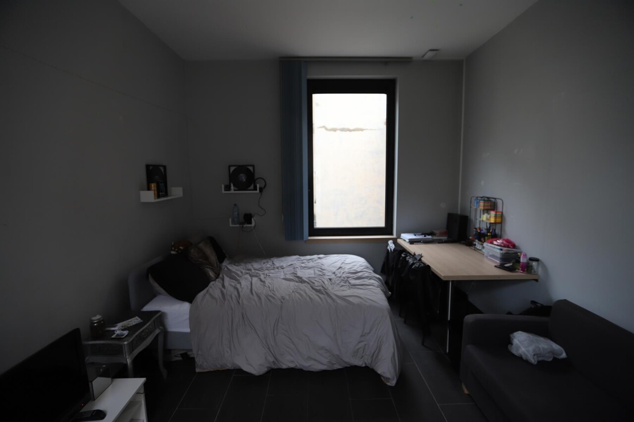 Studio/ duo-studio in een trendy en uniek nieuwbouw/renovatieproject op de Paardenmarkt. Er werd gekozen voor een moderne en degelijke afwerking met respect voor authentieke elementen. De studio is bemeubeld met een eettafel, bed, bureau, stoel, kleerkast en boekenkast. Geen matras & huisraad aanwezig. Al de kosten inbregrepen in de prijs, behalve elektriciteit. Centrale verwarming. Bijkomende huurder: + 50 EUR vaste kosten.